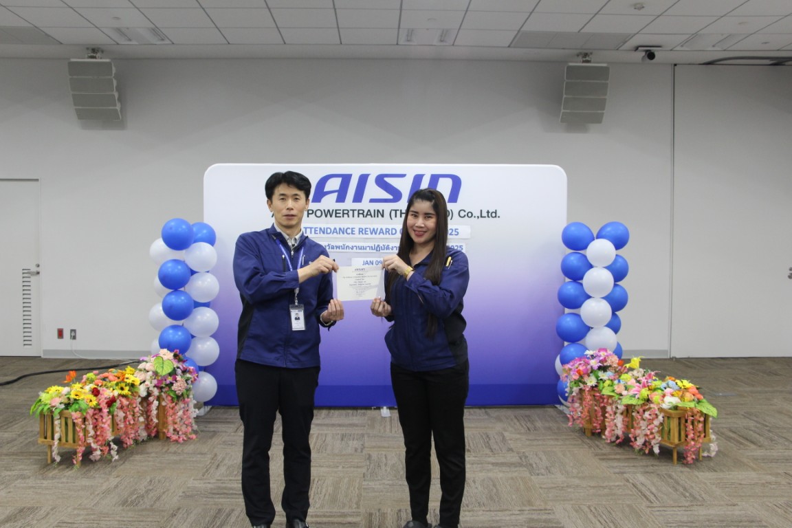 Aisin Powertrain (Thailand) Co., Ltd. organized the "Perfect Attendance Awards 2025" ceremonies on January 9 and January 16, 2026. These events were held to honor employees who demonstrated exceptional responsibility, discipline, and consistent attendance throughout the past year. The activity serves as a platform to express sincere gratitude and boost the morale of employees who serve as role models in their performance. The President and Senior Executives presided over the ceremony to offer their congratulations and personally present the awards.